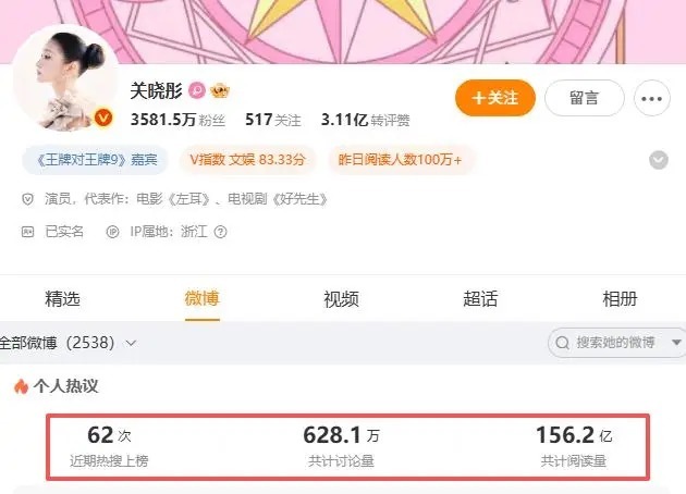 主页的阅读量将近630万,阅读量同样也高达155亿次。