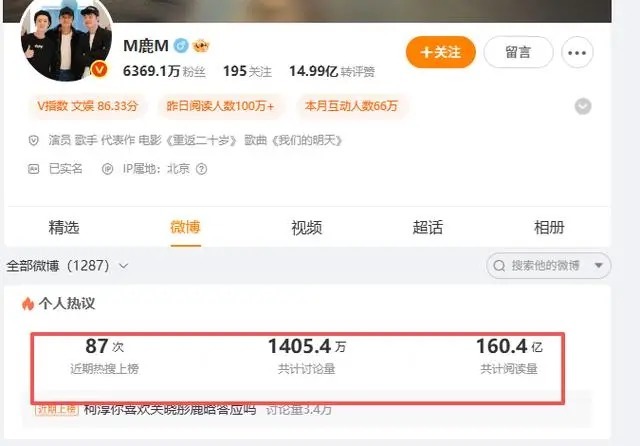 从鹿晗的个人社交平台来看,鹿晗近期上热榜就高达87次。